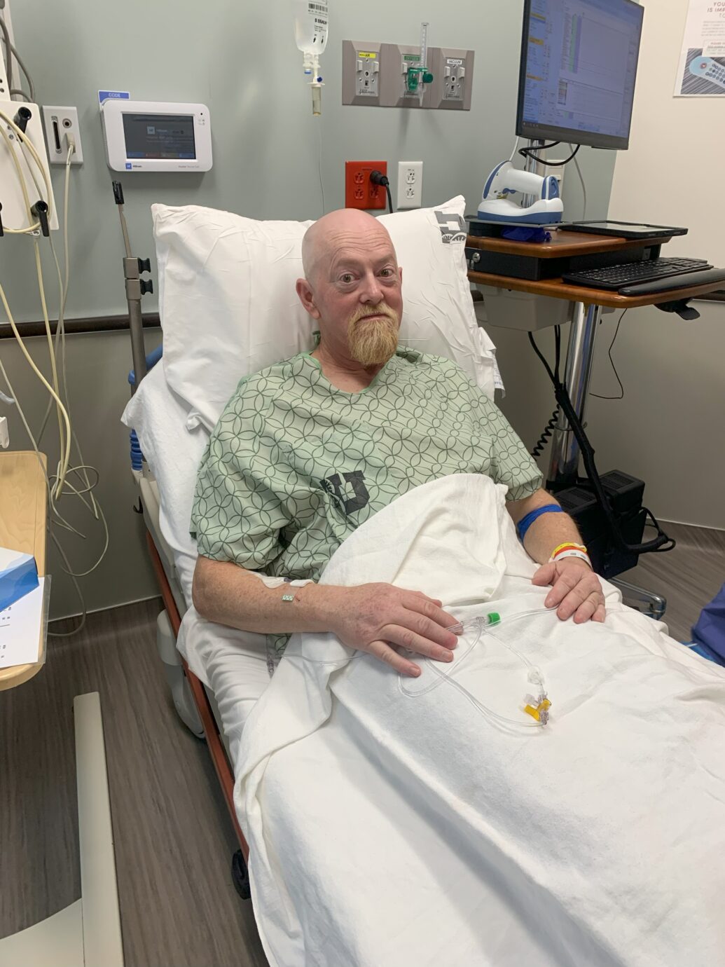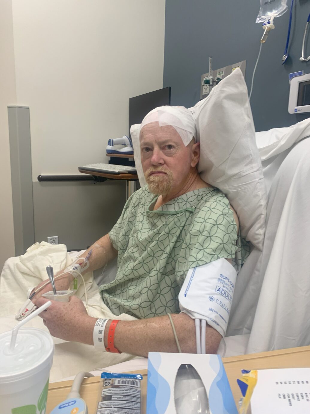 After they got Dave all ready for surgery, consents for treatment were signed, and they wheeled him away to the operating room. The neurosurgeon told me the first surgery could be 2-4 hours long and after that he would be in the recovery room for a couple of hours before I could see him, so I prepared for the long wait. I did my best to keep myself busy working on my computer in order to keep my mind off of the fact that someone was drilling into my husband’s skull not to far away from me.